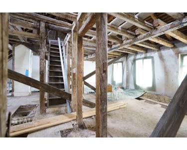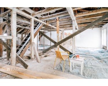 Dieser Bereich ist der letzte Teil des Gebäudes, der noch nicht saniert wurde. Das obere Stockwerk wurde bereits entkernt, und die umfangreichen Planungen, einschließlich der statischen Prüfung, sind abgeschlossen. Die Baugenehmigung ist vorhanden.