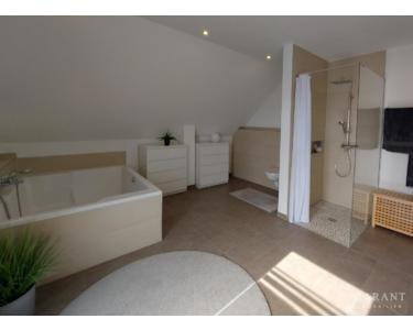 Im Obergeschoss erwarten Sie Rückzugsorte mit Charakter; ein Schlafzimmer mit begehbarem Kleiderschrank - Ihre persönliche Wohlfühloase, drei weitere Zimmer, flexibel nutzbar je nach Lebensphase, sowie ein luxuriös ausgestattetes Bad mit Walk-In-Dusche und XXL-Badewanne - ein kleines Wellnessparadies für jeden Tag. Und auch an Stauraum wurde gedacht: Der Dachboden bietet auf rund 37 qm viel Platz für alles, was nicht täglich gebraucht wird, aber dennoch Teil des Lebens ist.
