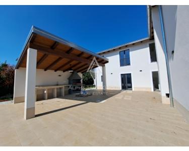 Zum Verkauf steht ein luxuriöses Neubauprojekt – eine moderne Villa, die erstklassiges Design mit dem Charme istrischen Steins verbindet. Sie liegt in ruhiger, grüner Umgebung, nur 5 km vom Zentrum von Poreč und dem Meer entfernt. Als letztes Haus in der Bauzone bietet sie absolute Ruhe, Privatsphäre und ein naturnahes Wohngefühl.