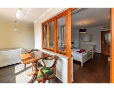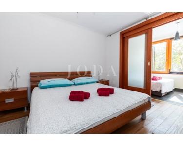 Das größere Haus besteht aus drei Etagen, mit komfortablen Zwei-Zimmer-Wohnungen auf den ersten beiden Etagen, und ein sehr geräumiges Studio-Apartment mit zwei Balkonen im Dachgeschoss.