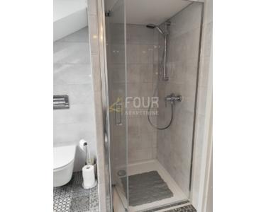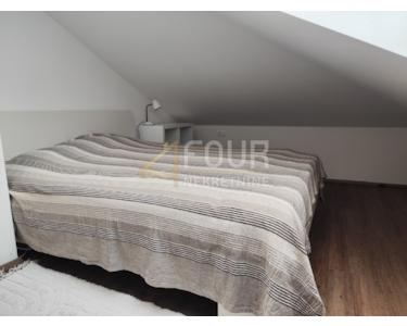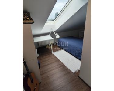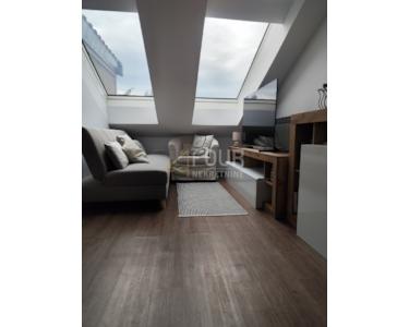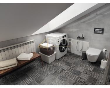 Der Innenraum ist sorgfältig eingerichtet und funktional gestaltet: Im Erdgeschoss befinden sich ein Eingangsbereich mit Badezimmer und ein Abstellraum, der leicht in ein Büro oder Gästezimmer umgewandelt werden kann. Im Obergeschoss befinden sich eine geräumige Küche mit Ess- und Wohnzimmer, ein Schlafzimmer, ein Badezimmer sowie ein zusätzlicher Flur und ein Abstellraum. Das Dachgeschoss bietet ein weiteres großes Wohnzimmer mit Zugang zur Terrasse, zwei Schlafzimmer und ein luxuriöses Badezimmer mit Badewanne und Duschkabine. Dank großer, elektronisch gesteuerter Dachfenster ist die Wohnung lichtdurchflutet.