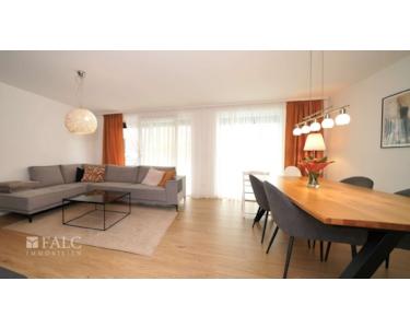 Das Wohn- und Esszimmer lässt viel Raum für eine individuelle Gestaltung und ist dank großer Fensterfront mit Zugang zur Südwestterrasse hell und einladend. Lassen Sie es sich hier gut gehen und verbringen Sie gemütliche Stunden mit Ihren Lieben oder feuchtfröhliche Spieleabende mit Freunden.