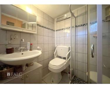 Das Badezimmer im Haupthaus verfügt über eine Badewanne und ein Fenster, was für angenehme Lichtverhältnisse sorgt. In der Einliegerwohnung steht ein weiteres Badezimmer mit Dusche zur Verfügung.
