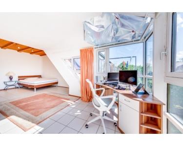 Der Dachausbau erfolgte überwiegend in Trockenbauweise, was individuelle Anpassungen und Umgestaltungen erleichtert. Die Wohnung ist noch bis Ende April 2026 möbliert vermietet.