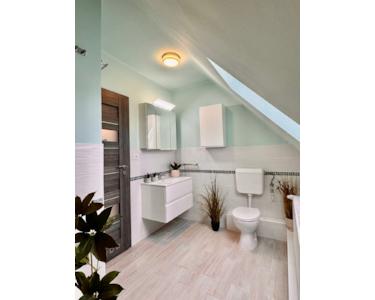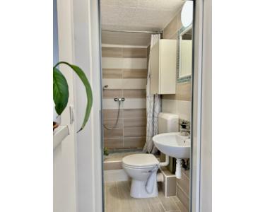 - Badezimmer mit Dusche und WC in einem Zimmer