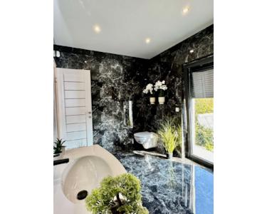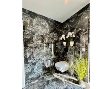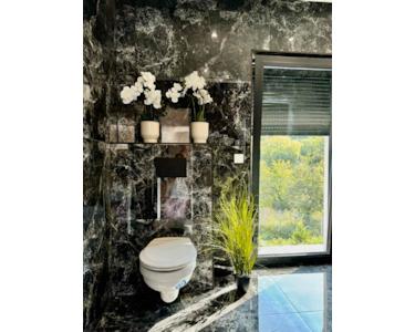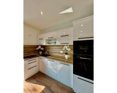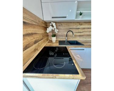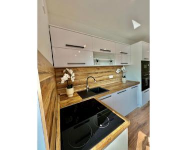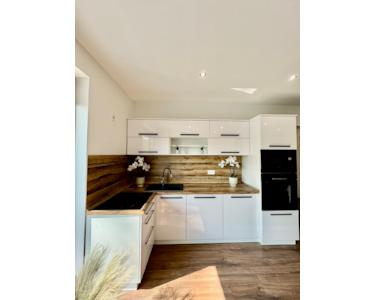 -die Küche ist mit hochglänzenden mechanisierten Küchenmöbeln, BOSCH-Küchengeräten (Cerankochfeld, Backofen, Mikrowelle, Geschirrspüler) und einer Granitspüle ausgestattet und macht den Alltag komfortabel