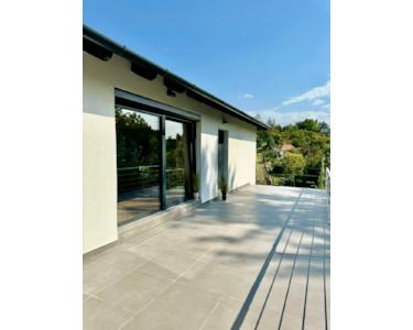 -ZIMMER: Amerikanische + Küche + Wohnzimmer, 3 Schlafzimmer, Kleiderschrank, Bad + WC, Heizraum + Waschküche, 3 Terrassen,