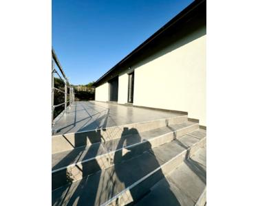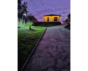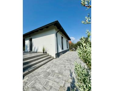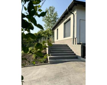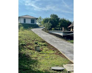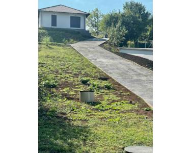 -das Grundstück ist terrassenförmig angelegt, die Straßenfront beträgt ca. 25 m, das Haus ist auf dem Teil des Grundstücks gebaut, der weiter von der Straßenfront entfernt ist, eine Betonauffahrt bietet Zugang