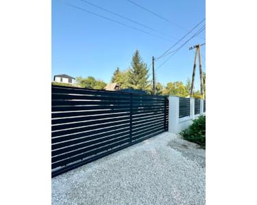 -Blechzaun des Lindab-Systems mit elektrischem Schwimmtor