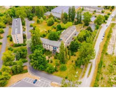 Bestand: Dreigeschossiges Hauptgebäude, zwei eingeschossige Nebengebäude