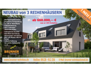Die Häuser werden in typischer und begehrter BRUNNER wohnbau GmbH Qualität gebaut. Die Häuser erhalten Fußbodenheizung, elektrische Rollos, CAT 7 Leitungen, individuell wählbare Bodenbeläge, zusätzliche Handtuchheizkörper sowie bodengleiche Duschen in den Bädern. Die Häuser verfügen im Keller über einen Hauswirtschaftsraum, einen Technikraum einen kleineren sowie einen großen Kellerraum, welcher als Hobbyraum genutzt werden kann. Das Dachgeschoss wird als zusätzliches zum Treppenhaus offenes Zimmer ausgebaut, kann aber auch als abschließbares Zimmer (Sonderwunsch) gewählt werden. Im Preis ist die komplette Einfriedung der Gartengrundstücke, große Süd-Westausgerichtete Terrassen sowie die Rasenansaat enthalten. Mit dem Bau wird im Mai 2025 begonnen. Grundrissänderungen und Sonderwünsche können während der Rohbauzeit bis ca. Mitte Mai 2025 noch durchgeführt werden (z.B.: abschließbares Zimmer im DG, 1 großes Kinderzimmer im OG, großes Bad im OG)