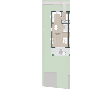 Neubau von 3 Reihenhäuser, hier REH Nr. 1, in KfW 55 Niedrigenergiebauweise, mit jeweils 2 KFZ-Stellplätzen. Alle Häuser werden mit Keller-, Erd- sowie Dachgeschoss errichtet.