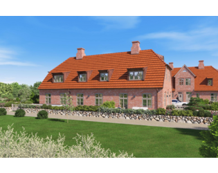 Die Fassade verblendet mit antiken Klinkersteinen, das Dach gedeckt mit Dachstein Ziegeln, die Eingangstüren nach „nordischer Art“ gestaltet: