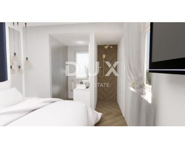 Wohnung zum Verkauf im ersten Stock eines Gebäudes mit 4 Wohnungen. Die Wohnung besteht aus zwei Schlafzimmern, Wohnzimmer mit Küche, zwei Bädern und einer Toilette, Heizraum, Speisekammer und Dachterrasse, auf der ein Wellnessraum entstehen wird. Heizung ist Fußbodenheizung, elektrisch, und Klimaanlage wird in jedem Zimmer installiert. Baubeginn war im September 2021, die Baufertigstellung ist in 12-18 Monaten geplant. Die Wohnung wird Meerblick haben. Es befindet sich in einer sehr attraktiven Lage, nur 1 km vom Zentrum von Porec und 500 m von den ersten Stränden entfernt. Die Wohnung ist für Wohn- und touristische Zwecke geeignet.