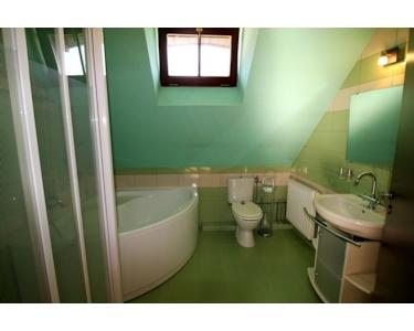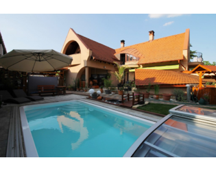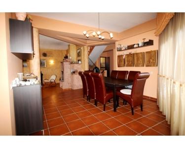 Die innere Aufteilung des Gebäudes ist durchdacht und für das Zusammenleben mehrerer Generationen geeignet. Zusätzlich zu der 65 m2 großen Wohnküche im Erdgeschoss steht uns ein separater Wohnbereich, ein „Abschnitt“ mit 1 Zimmer, Bad und Kochnische zur Verfügung. Im Dachgeschoss befinden sich 4 Schlafzimmer und drei Badezimmer mit Fluren, einer Garderobe und drei Balkonen. In der geräumigen Küche ist die komfortable, vollwertige Küchenzeile mit Miele-Geräten ausgestattet und für einen reibungslosen Betrieb ist ein Drehstromanschluss (Industriestrom) vorhanden. Erwähnenswert ist auch der eingebaute Kamin im Wohnzimmer, der an Wintertagen für eine angenehme Atmosphäre sorgt. Das mit einem besonders hohen Wärmedämmwert ausgestattete Außenmauerwerk Porotherm 44 erhielt (obwohl dies nicht vorgesehen war) zusätzliche 5 cm Wärmedämmung. was den geringen Heizenergiebedarf des Gebäudes sicherstellt. Die Gasrechnung ist im Verhältnis zur Größe des Hauses (beheizte Fläche ca. 400 m2) angemessen und beträgt pauschal 30.000 HUF/Monat.