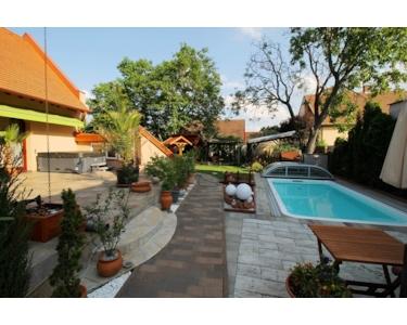 Nyáron a 44 m2-es részben fedett terasz (amelyet, a ház több pontjáról elérhetünk) folyamatos lazításra ösztönöz, amiben egy 5 személyes Jakuzzi is segíthet! Néhány lépésre a terasztól egy tetővel, gépészettel és napozó terasszal is ellátott, 6 x3 m-es,1,5 m mély, kerti medencében pancsolhatunk.