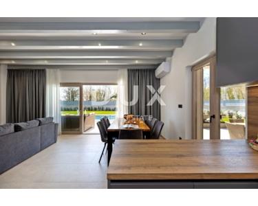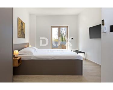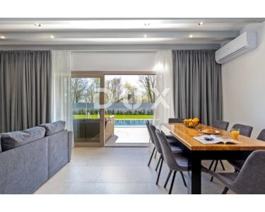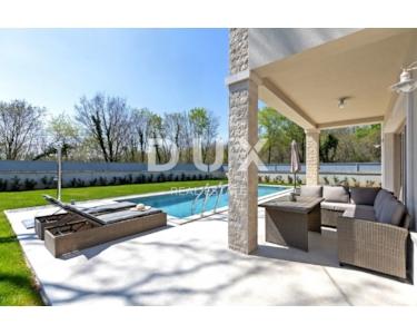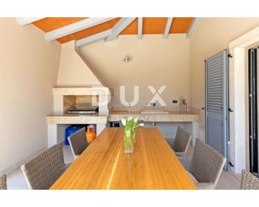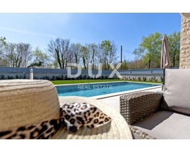 An der Südostküste Istriens, wo grüne Hügel auf das Meer treffen, wo Natur und Kulturerbe sich vereinen, gibt es zwei Städte ähnlicher Größe mit unterschiedlichem, aber sich ergänzendem Charakter – Labin und Rabac. Die malerische Stadt Labin erhebt sich auf einem 320 Meter hohen Hügel, nur vier Kilometer von den weißen Kieselstränden von Rabac entfernt. Labin, das kurzzeitig zur unabhängigen Republik erklärt wurde, ist mit seiner reichen Geschichte und dem Bergbau, der diese Region geprägt hat, heute eine faszinierende Stadt der Widersprüche. Alt und Neu, Geschichte und Gegenwart, Tourismus und Kunst. In der Nähe der Stadt Labin steht ein Haus mit Swimmingpool zum Verkauf. Es liegt in einem ruhigen Dorf, umgeben von Natur, Einfamilienhäusern und Ferienhäusern und bietet die perfekte Balance zwischen ländlicher Umgebung und der Nähe zu städtischen Annehmlichkeiten und dem Meer. Neben der Lage, die umfassenden Komfort bietet, zeichnet sich das Objekt auch durch die Bauqualität aus, die langfristige Zufriedenheit und Wohnqualität garantiert. Es ist als einzelne Wohneinheit konzipiert, die sich über zwei Etagen mit luftigen, von natürlichem Licht durchfluteten Innenräumen erstreckt, die Eleganz ausstrahlen. Das Erdgeschoss besteht aus einem offenen Raumkonzept, das Wohnzimmer, Esszimmer und Küche vereint und Zugang zu einer überdachten Terrasse mit einer Sommerküche bietet. Ergänzt wird der Grundriss des Erdgeschosses durch ein Schlafzimmer, ein Badezimmer und einen Technik-/Abstellraum. Der erste Stock besteht aus zwei Schlafzimmern mit eigenen Bädern und Zugang zu einer mit einer Pergola überdachten Terrasse. Der Hof ist landschaftlich gestaltet und gärtnerisch gestaltet, und für vollkommene Harmonie sorgt ein elegant integrierter 40 m² großer Pool mit Liegewiese. Die hervorragende Lage und die räumliche Aufteilung des Innen- und Außenbereichs dieser Immobilie bieten die Möglichkeit für ein komfortables Familienleben oder eine Investition in ein touristisches Vermietungsgeschäft.