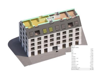 Das durchdachte Projekt erstreckt sich über sechs Etagen und umfasst insgesamt 15 Eigentumswohnungen in den oberen Geschossen sowie zwei vielseitig nutzbare Gewerbeeinheiten im Erdgeschoss. Zu jeder Wohnung gehört eine gemütliche Loggia, welche Ihnen herrliche Ausblicke und entspannte Momente im Freien ermöglicht.