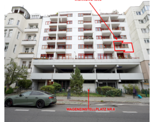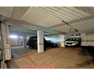 Zur Wohnung gehören ein Kellerraum und ein Wageneinstellplatz im Erdgeschoss der Anlage, der über ein Stahltor von der Straße aus direkt anfahrbar ist.