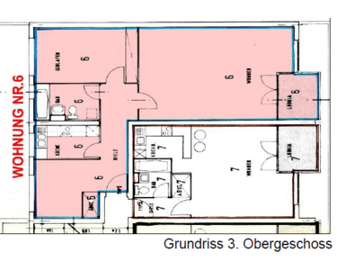 Die Wohnung ist mit dem Wohnzimmer und dem Balkon nach Westen zur Straße sowie mit den beiden weiteren Wohnräumen, der Küche und dem Bad nach Osten zum Hof ausgerichtet.