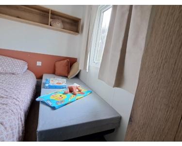 Vier-Bett-Vollelektrik Rapidhome Salsa, Modell 2025. Kompaktes Familienchalet mit zwei Schlafzimmern. Vollelektrisch! Mit Veranda.