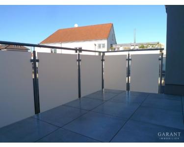 * Balkone Feinsteinzeugfliesen 20 mm, Edelstahlgeländer/Milchglas