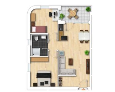 - einen schönen Wohn-Ess-Kochbereich mit Zugang zu Ihrem Balkon
