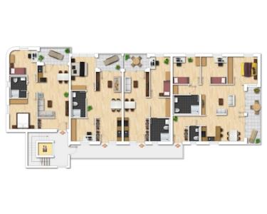Durch die verschiedenen, gut durchdachten Grundrisse erfüllen sich hier die Wünsche von Jung und Alt, Paaren und Familien. Dass das Gebäude über einen Aufzug und alle Wohnungen über einen barrierearmen Zugang verfügen, ist ein weiterer Vorteil.