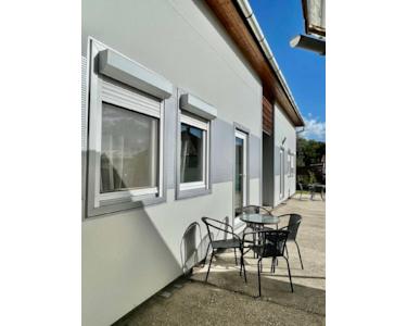 -Das Gästehaus verfügt über 4 Apartments, d.h. 1-Zimmer-Apartments, ausgestattet mit Bad und Kochnische, sowie 5 Zimmer, jedes Zimmer mit eigenem Bad