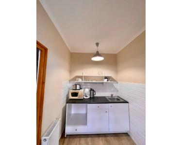 -a konyha jól felszerelt, hűtővel kávé/tea főzővel valamint mikrohullámú sütővel ellátva, szobákban Full HD Tv