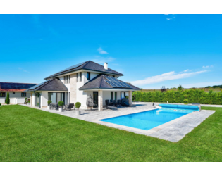 Etyek gyönyörű, panorámás részén ajánlok megvételre egy 240 m2-es, kétszintes, 5 szobás, modern stílusban épült LUXUS családi házat, 1549 m2-es telekkel, 5 férőhelyes GARÁZZSAL, kültéri, fűthető MEDENCÉVEL.