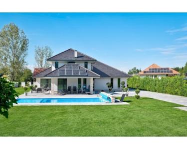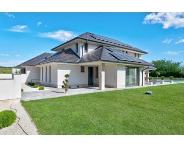 In einem wunderschönen Teil von Etyek mit Panoramablick biete ich ein 240 m2 großes, zweistöckiges, LUXUS-Familienhaus mit 5 Zimmern im modernen Stil zum Verkauf an, mit einem 1549 m2 großen Grundstück, einer GARAGE mit 5 Stellplätzen und einem beheizten Außenpool.