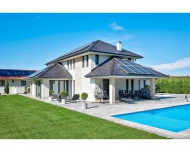 Rund um das Gebäude erstreckt sich eine 40 m2 große, überdachte Terrasse und für den Komfort der Bewohner sorgt ein 10 x 4 m großer, beheizter Swimmingpool.
