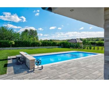 Az épület körül 40 m2 fedett terasz található, és egy 10 x 4 m-es, fűthető úszómedence szolgálja a lakók kényelmét.