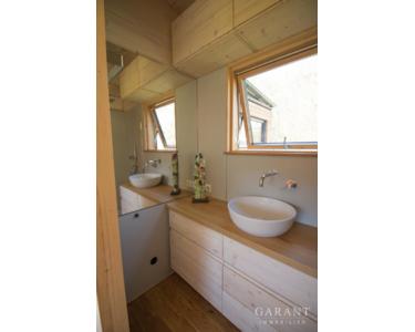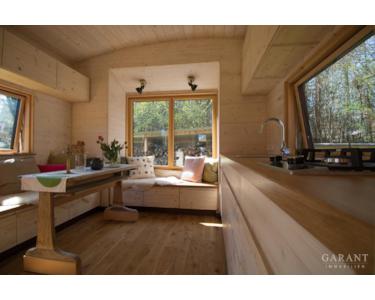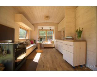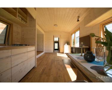 Bei diesem exklusiven Tiny-House der Luxusklasse vereinen sich nicht nur fortschrittliche Technologie mit modernem Design, sondern auch Komfort mit Nachhaltigkeit. Eine hohe Qualität der verbauten Materialien steht im Vordergrund. Der geölte Eichendielenboden, die Fichtenwände und der exklusive Holzofen strahlen Wärme und Behaglichkeit aus. Bei diesem besonderen Wohnambiente geht Ihnen das Herz auf!