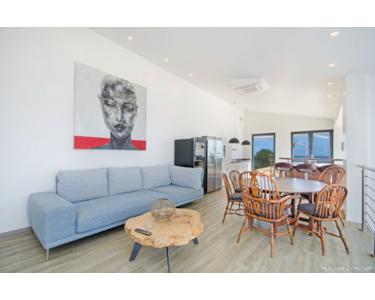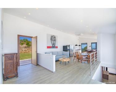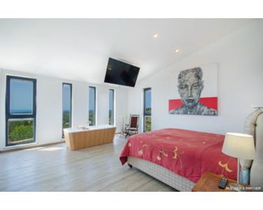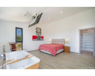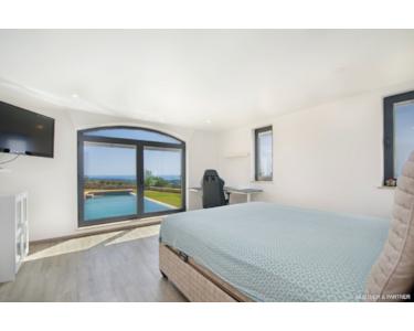 Der Pool ist ein echtes Highlight und bietet zahlreiche Extras, darunter eine mehrfarbige Beleuchtung und eine automatische Pool-Abdeckung. Auf der ersten Etage erwarten Sie der großzügige Wohnbereich mit offener Küche sowie das Master-Schlafzimmer mit Ankleidebereich. Von hier aus gelangen Sie auf die riesige Terrasse, die Ihnen einen traumhaften Ausblick auf die Natur und das Meer bietet.
