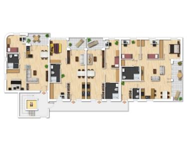 Durch die verschiedenen, gut durchdachten Grundrisse erfüllen sich hier die Wünsche von Jung und Alt, Paaren und Familien. Dass das Gebäude über einen Aufzug und alle Wohnungen über einen barrierearmen Zugang verfügen, ist ein weiterer Vorteil.