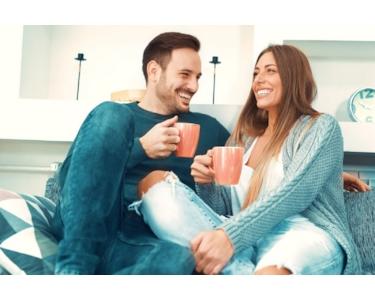 Paar-Mann-Frau-Sitzen-Sitzsack