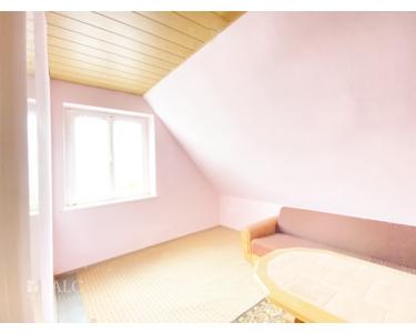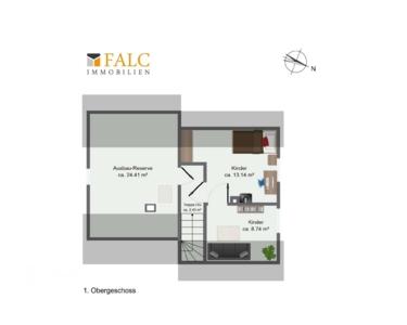 Über eine Treppe gelangen Sie in das Obergeschoss, wo sich zwei weitere Zimmer befinden. Diese eignen sich hervorragend als Kinderzimmer oder Büro. Ein besonderes Highlight ist die Ausbaureserve im Dachgeschoss, die Ihnen die Möglichkeit bietet, zusätzlichen Wohnraum zu schaffen.