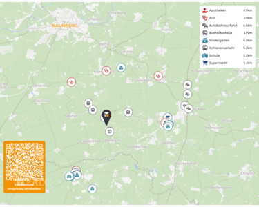 Diese Immobilie bietet eine ideale Kombination aus ländlicher Ruhe und guter Erreichbarkeit von städtischen Annehmlichkeiten, was sie zu einem attraktiven Wohnort für Familien und Pendler macht.