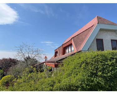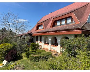Sukorón, átmenő forgalomtól mentes, rendezett utcában 235 m2 hasznos alapterületű, 3 szintes, impozáns és rusztikus hangulatú, a Velencei-tóra panorámás kilátású családiház 1249 m2-es telken parkosított telken eladó!