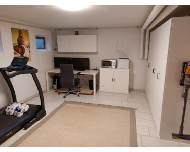 Zum Haus gehören eine massive Garage sowie ein zusätzlicher PKW-Stellplatz. Im Keller steht ein modernes Duschbad zur Verfügung; zwei der Kellerräume wurden in wohnliche Räume umgestaltet und eignen sich ideal als Gästezimmer, Büro oder Hobbybereich.