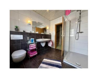 Das Haupt-Bad im Obergeschoss wurde im Jahr 2013 modernisiert und dadurch optisch attraktiv gestaltet. Zusätzlich gibt es im Erdgeschoss ein Gäste-WC mit Fenster im Erdgeschoss, das im gleichen Jahr erneuert wurde.
