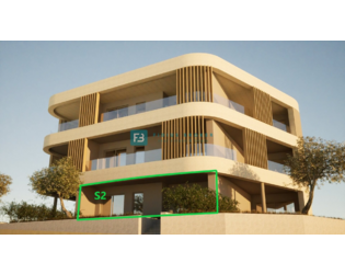 Die Wohnung S2 mit einer Gesamtfläche von 81,21 m2 (Wohnfläche 59,74 m2 und Terrasse 21,47 m2) + Garten 45,22 m2 + Parkplatz 12,50 m2 befindet sich im Erdgeschoss. Es ist nach Süden ausgerichtet. Es besteht aus einem Flur, einer Toilette mit Waschküche, einem Badezimmer, zwei Schlafzimmern, einer Küche mit Esszimmer und einem Wohnzimmer mit Zugang zu einer überdachten Terrasse von 21,47 m2 und einem Garten von 45,22 m2. Zur Wohnung gehört ein PKW-Stellplatz im Hof des Gebäudes.