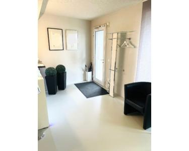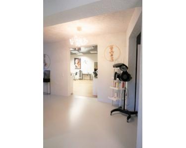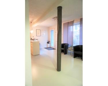 - hellgrauer Kunstharzboden im vorderen Eingang und Arbeitsbereich