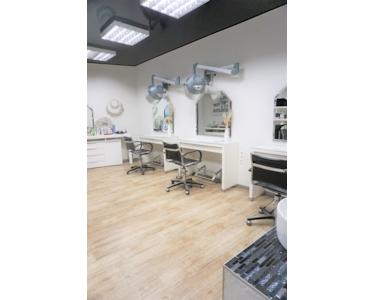 - Lackspanndecke (schwarz) im hinteren Arbeitsbereich