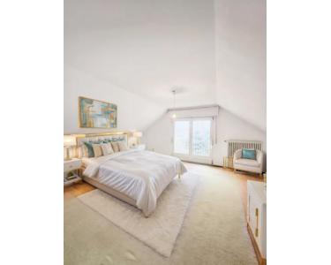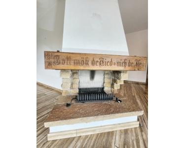 Im Wohnbereich befindet sich ein wunderschöner offener Kamin, der nach der neuen Verordnung noch mit einer Kassette zu füllen wäre. Weiter im Winkelbungalow gelangen Sie über die Marmortreppe nach oben zu den ausladenden Schlafräumen. Mit 3-4 Schlafzimmern hat hier eine Familie mit bis zu 8 Personen platz.