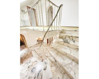 Das Haus zeigt bereits im Eingangsbereich seine komfortable großzügig geschnittene Raumgestaltung. Im Flur begrüssen Sie Ihre Gäste, ohne sich gegenseitig auf die Füsse zu treten. Hier befindet sich auch direkt das Gäste WC. Der ganze Bereich im Erdgeschoss ist mit einem hochwertigen Marmorfussboden gefliest. Über einen kleinen Innenflur erreichen Sie links die Küche mit Zugang zum Carport, von wo aus auch der Einkauf schnell mal eben abgeladen werden kann.