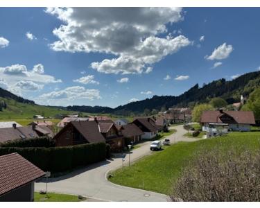 Das Einfamilienhaus mit Einliegerwohnung befindet sich in Ebratshofen, umgeben von grünen Wiesen und Wäldern. Die ruhige Wohngegend bietet eine entspannte Atmosphäre und ist ideal für Naturliebhaber und Ruhesuchende. In unmittelbarer Nähe befinde sich ein kleiner Einkaufsladen für den täglichen Bedarf.