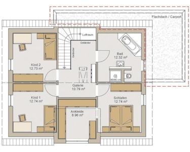 Als Highlight dient in diesem schmucken Wohntraum der Elternbereich mit Ankleidezimmer. Um auch den Kleinsten den größten Platz bieten zu können, bestechen die beiden Kinderzimmer mit einer jeweiligen Größe von 13 m².